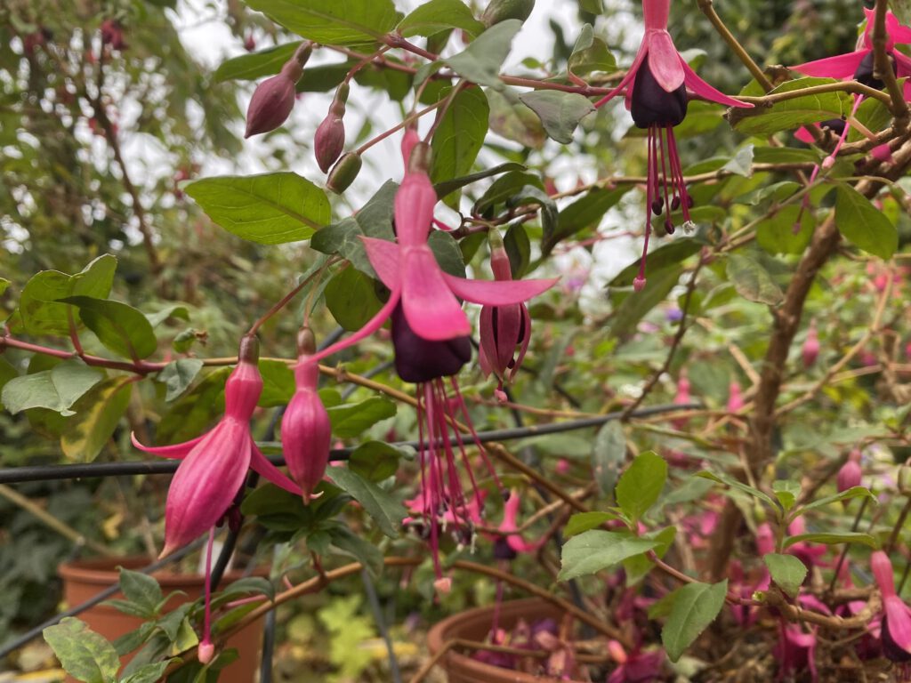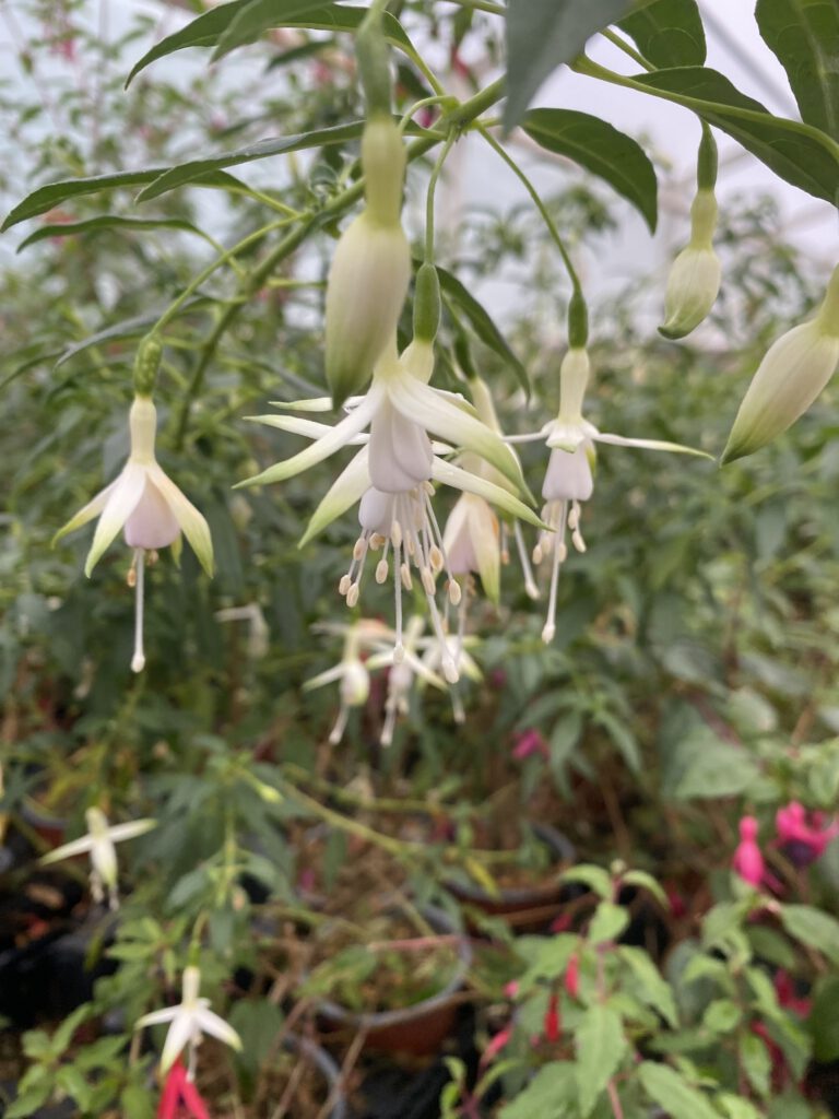 Fuchsia Hybride Bei Liebhabern in der Region entdeckt und begeistert in unsere Produktion aufgenommen Winterharte Fuchsien Fuchsia magellanica var. auruca Margaret Fuchsia regia var. reitzii Delta Sarah Flash Ernst Naschke Brockenfeuer Snow Lady Vitalo Insel Neuwerk Lady Boothby Klettermax Liebhaber-Sorten Checkerboard Anita Gloria Johnsen Mrs. Popple Celia Smedley